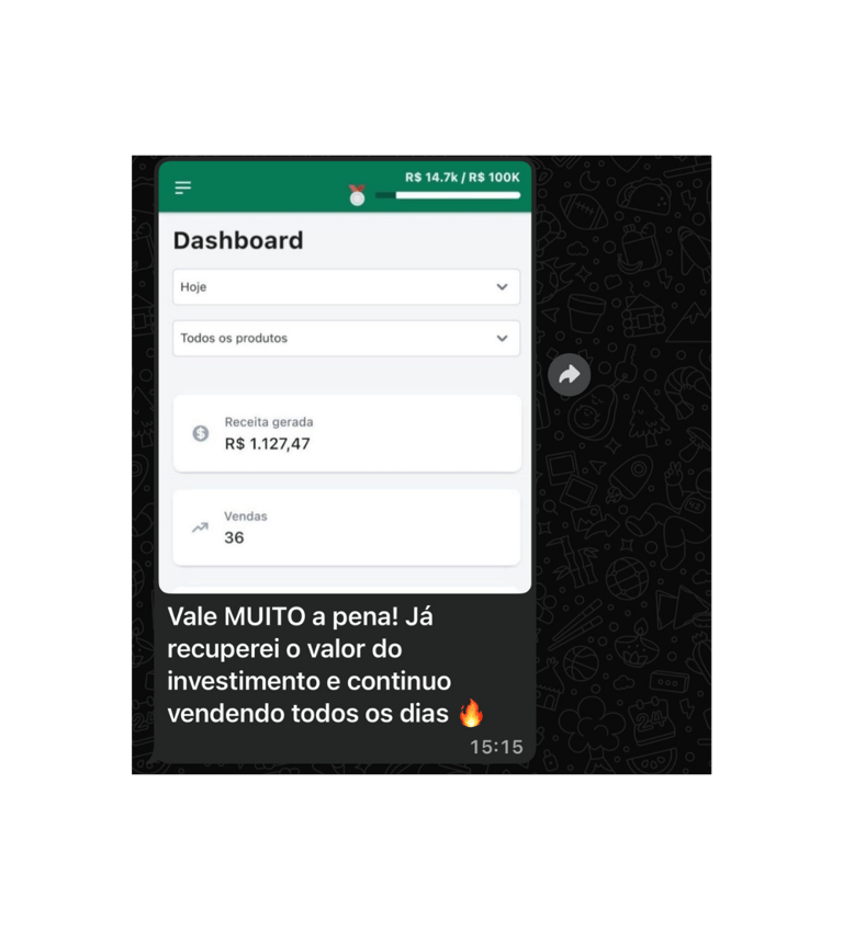 Ou seja, com apenas uma venda, você já pode recuperar o valor investido e começar a lucrar.